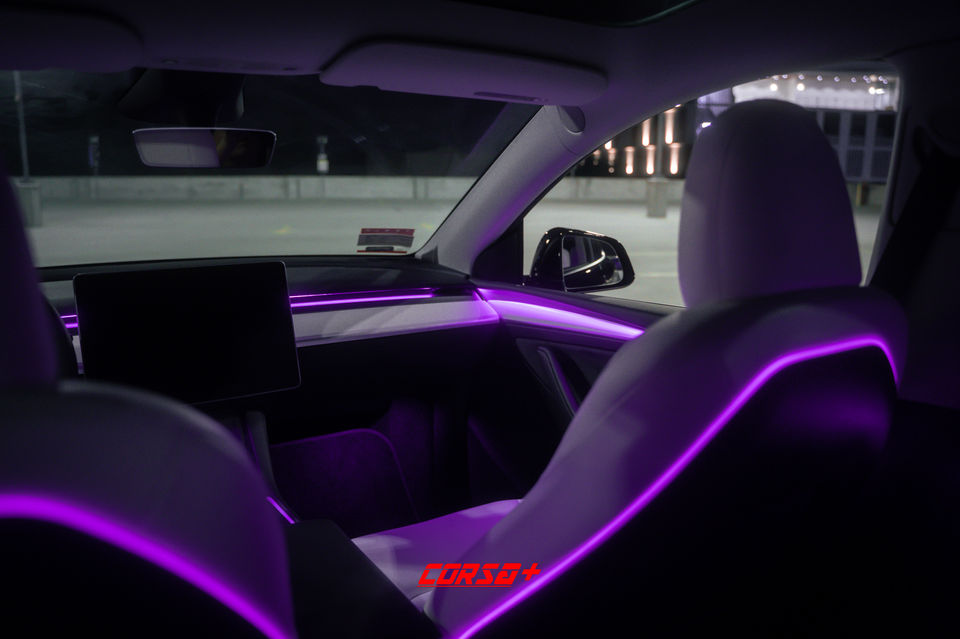 Our all new LED ambient lighting kit is the perfect upgrade for your technology-packed Tesla. This full colored kit are 4 zone completely customizable, contact us for booking.